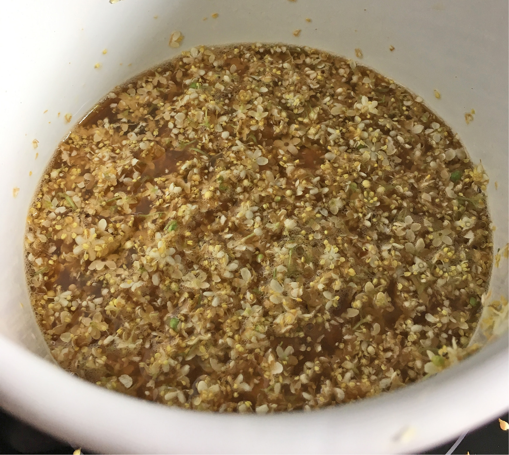 Möchte man sehr feine Blüten reduzieren, wie zum Beispiel den Holunder, sollte man vorab schon einen Apfelsaft auf die Hälfte reduzieren. Hierfür eignen sich am besten naturtrübe Bioapfelsäfte ohne Zuckerzusatz.
